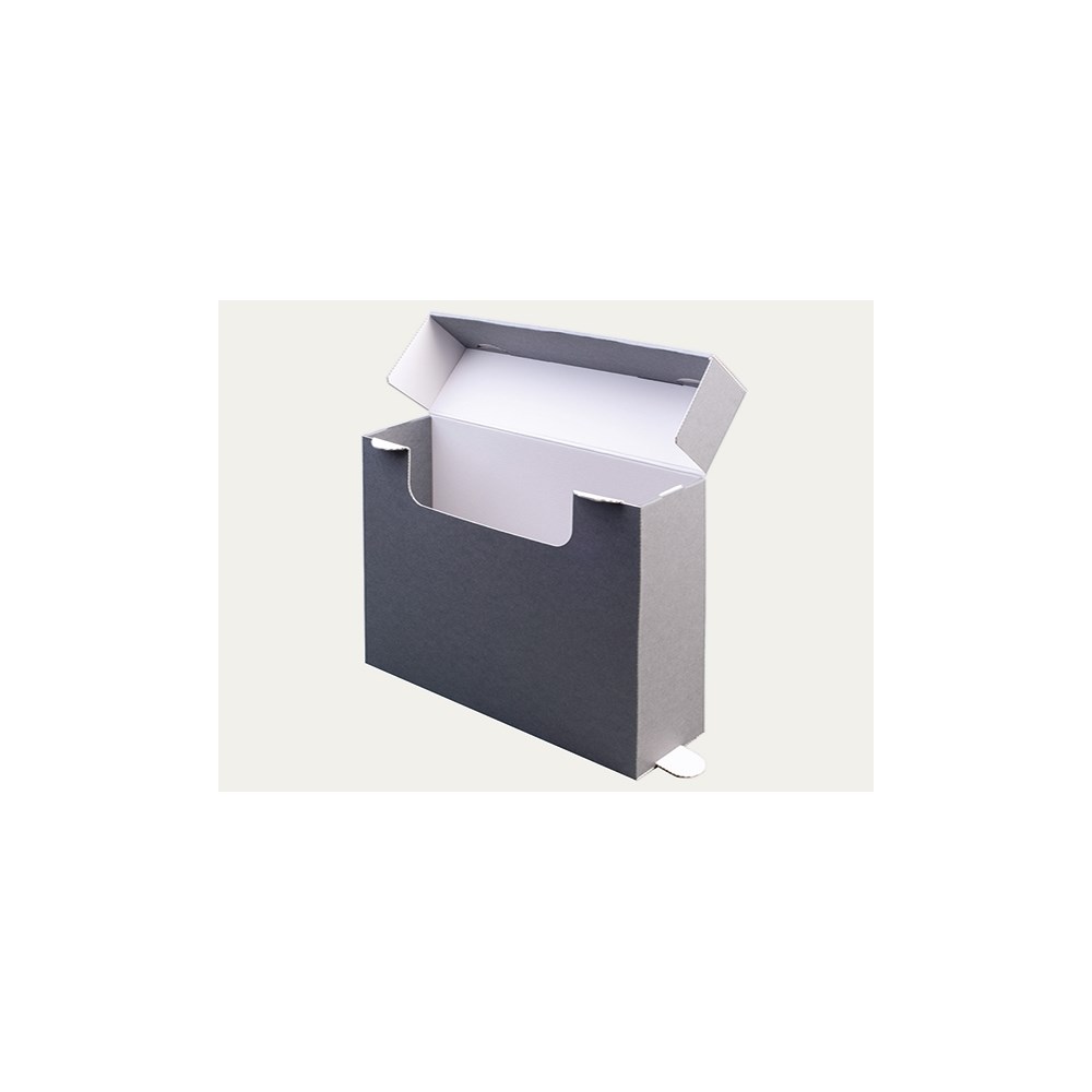 Laget av 1,7 mm e-flute. Grå-blå/hvit farge.