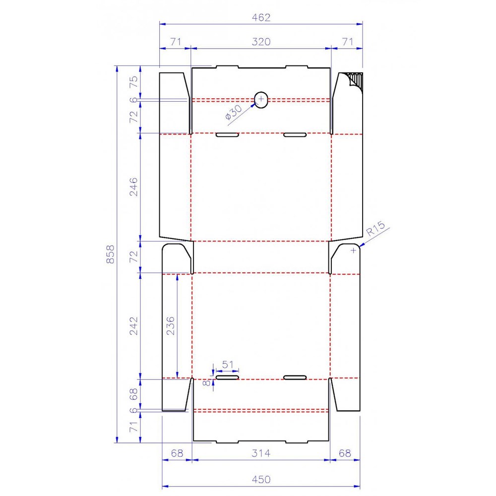 Leveres i plano, er selvlåsende og er laget av 2 mm syrefri bølgepapp.