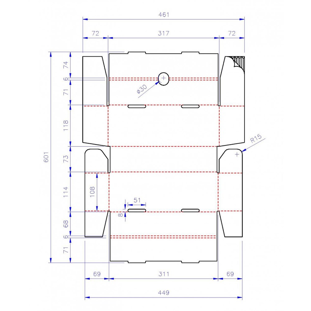 Leveres i plano, er selvlåsende og er laget av 2 mm syrefri bølgepapp.
