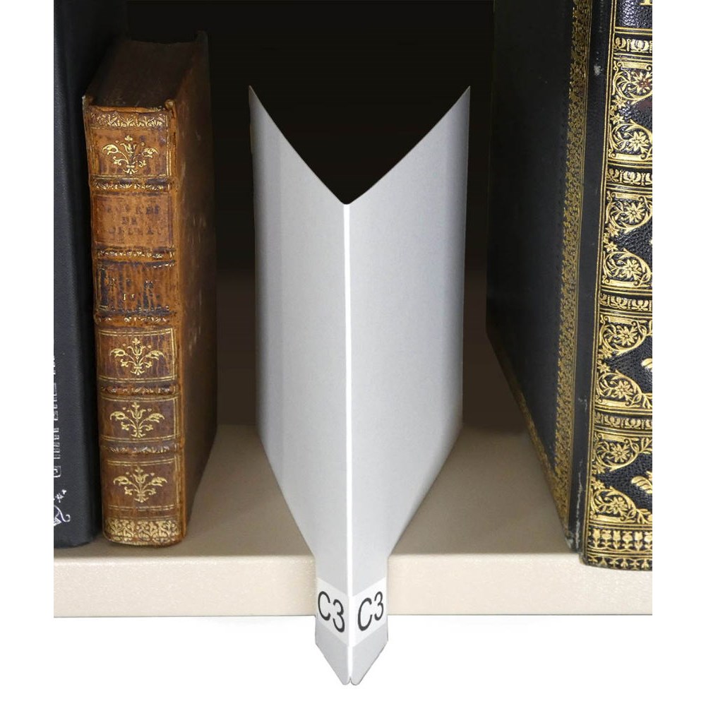 Selvstående hyllemarkører for inndeling av samlinger av bøker, bokser eller andre gjenstander på hyller.