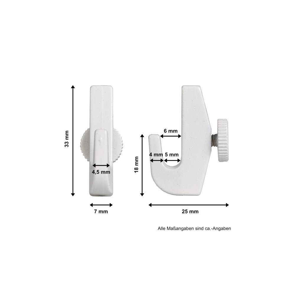Opphengskrok til wire, stor m/ skrue, hvit