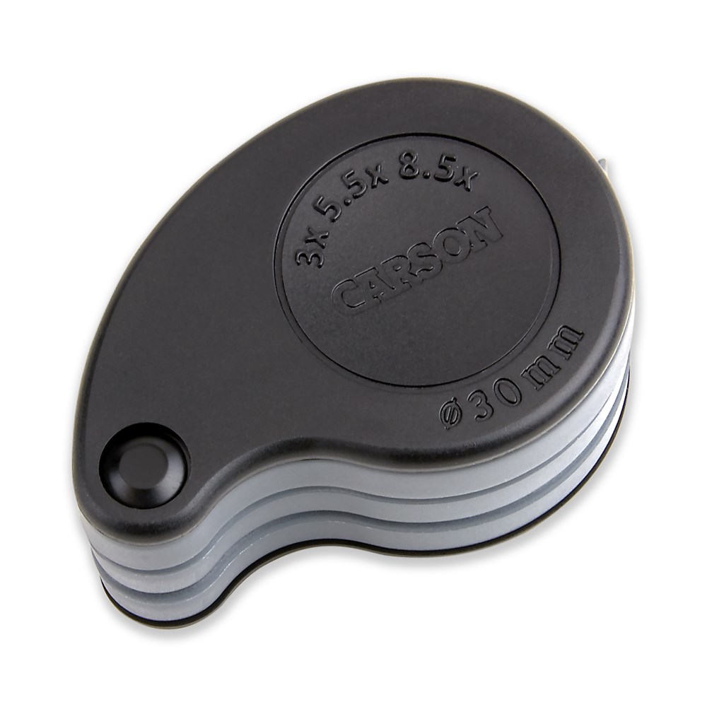 TriView™ forstørrelsesglass er en kompakt, bærbar sammenleggbar lupeforstørrelsesglass med effekt fra 3x-8,5x effektforstørrelse.